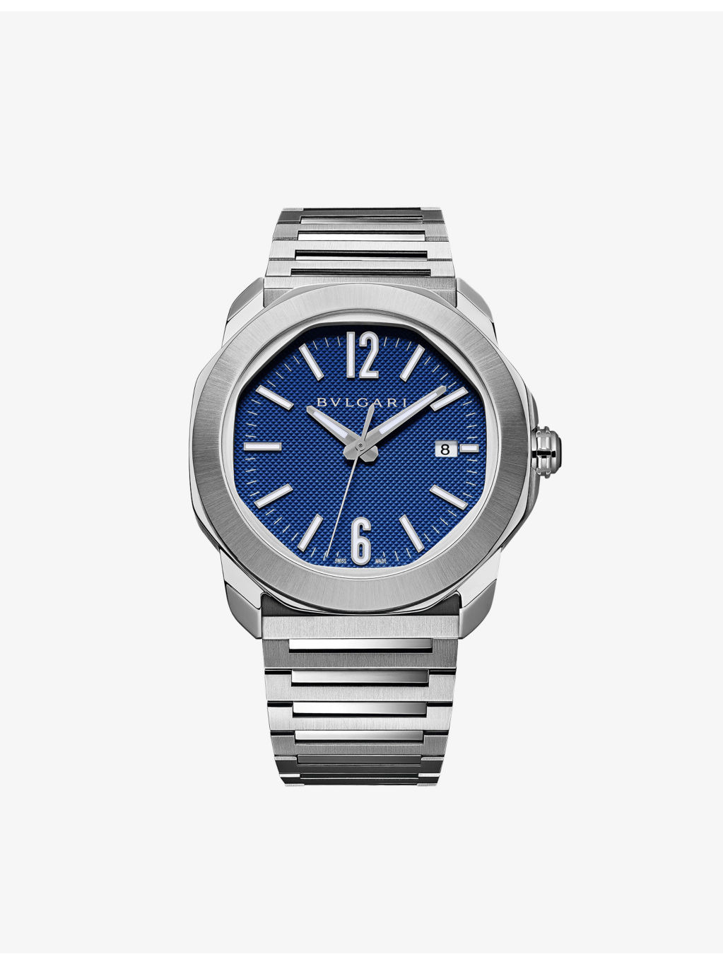 PRODUCT DETAILS - Bvlgari stainless-steel automatic watch - 100% stainless steel - Style number: RE00019 - Folding-buckle fastening - Octagonal Clous de Paris dial, satin-brushed and polished case, mechanical movement, automatic winding, synthetic-sapphire glass, BVL 399 calibre, interchangeable bracelet, 42hr power reserve, metallic indexes and hands filled with Super-LumiNova®, date opening at 4:30, small seconds at 3 o'clock, chronograph hour at 6 o'clock and chronograph minutes at 9 o'clock, stainless steel screw crown with protective system - Case diameter: 41mm - Wipe with a clean, dry cloth - Water resistance: 10 bar / 10 atm / 100m / 330ft - Made in Switzerland - Five-year manufacturer's warranty - Bvlgari prides itself on providing excellent customer service. This includes contacting customers to offer after-sales care and share details about its brand and products. As such, when you order a Bvlgari product from us, your details will be passed onto Bvlgari so that it can provide these services to you Ref: R04319487