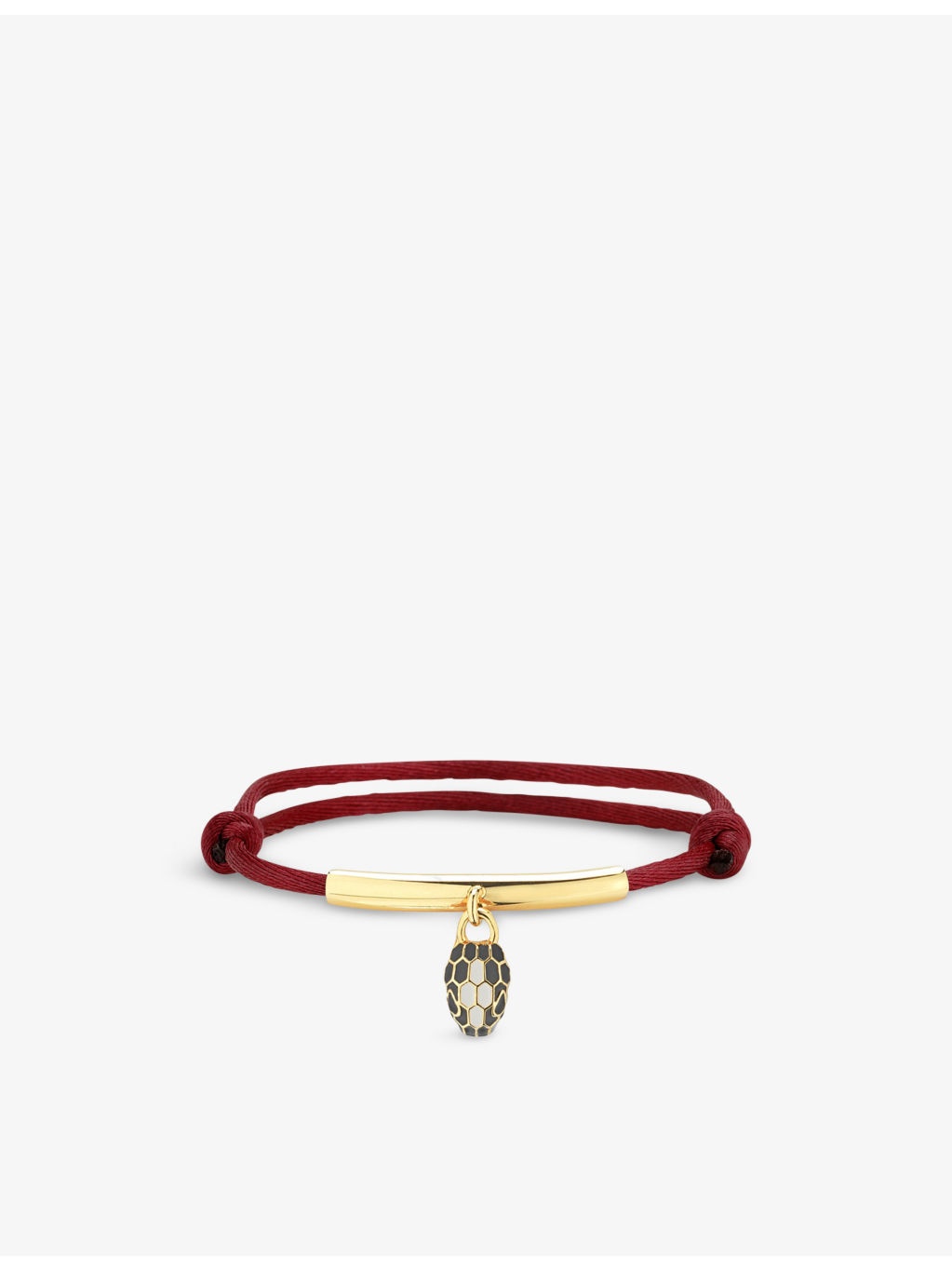 PRODUCT DETAILS - Bvlgari cord, brass, agate and enamel bracelet - 100% cord; hardware 100% gold-plated brass - Agate, enamel - Slips on - Adjustable cord, gold-toned brass, serpenti pendant, polished finish, brand engraved - Cord length: 12.5cm - 22cm - Wipe with a clean, dry cloth - Made in Italy - Bvlgari prides itself on providing excellent customer service. This includes contacting customers to offer after-sales care and share details about its brand and products. As such, when you order a Bvlgari product from us, your details will be passed onto Bvlgari so that it can provide these services to you Ref: R04092754
