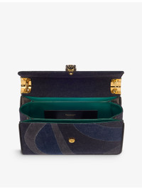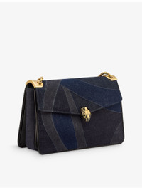 PRODUCT DETAILS - Bvlgari denim shoulder bag - 100% cotton - Magnetic fastening - Detachable chain strap, Serpenti head closure with enamel and onyx detailing, all-over abstract pattern, two main compartments, one interior pocket, gold-toned hardware, contrast leather lining - Width 28.5cm, height 19cm, depth 7.5cm - Wipe with a clean, dry cloth - Made in Italy - Bvlgari prides itself on providing excellent customer service. This includes contacting customers to offer after-sales care and share details about its brand and products. As such, when you order a Bulgari product from us, your details will be passed onto Bvlgari so that it can provide these services to you Ref: R04198464