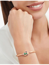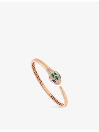 PRODUCT DETAILS - Bvlgari 18ct rose-gold, 0.5ct round-cut diamond and 0.4ct sapphire bangle bracelet - 100% 18ct rose gold - Diamond, sapphires totalling 0.4cts - Slips on - Snakehead silhouette, engraved detail, sapphire and diamond settings, polished finish - Carat weight: 0.5ct - Carat cut: round-brilliant - Dimensions: Diameter 15cm - Wipe with a clean, dry cloth - Made in Italy - Bvlgari prides itself on providing excellent customer service. This includes contacting customers to offer after-sales care and share details about its brand and products. As such, when you order a Bulgari product from us, your details will be passed onto Bvlgari so that it can provide these services to you. - To learn more about this product or for expert styling services, get in touch with our Personal Shopping team Ref: R03926098