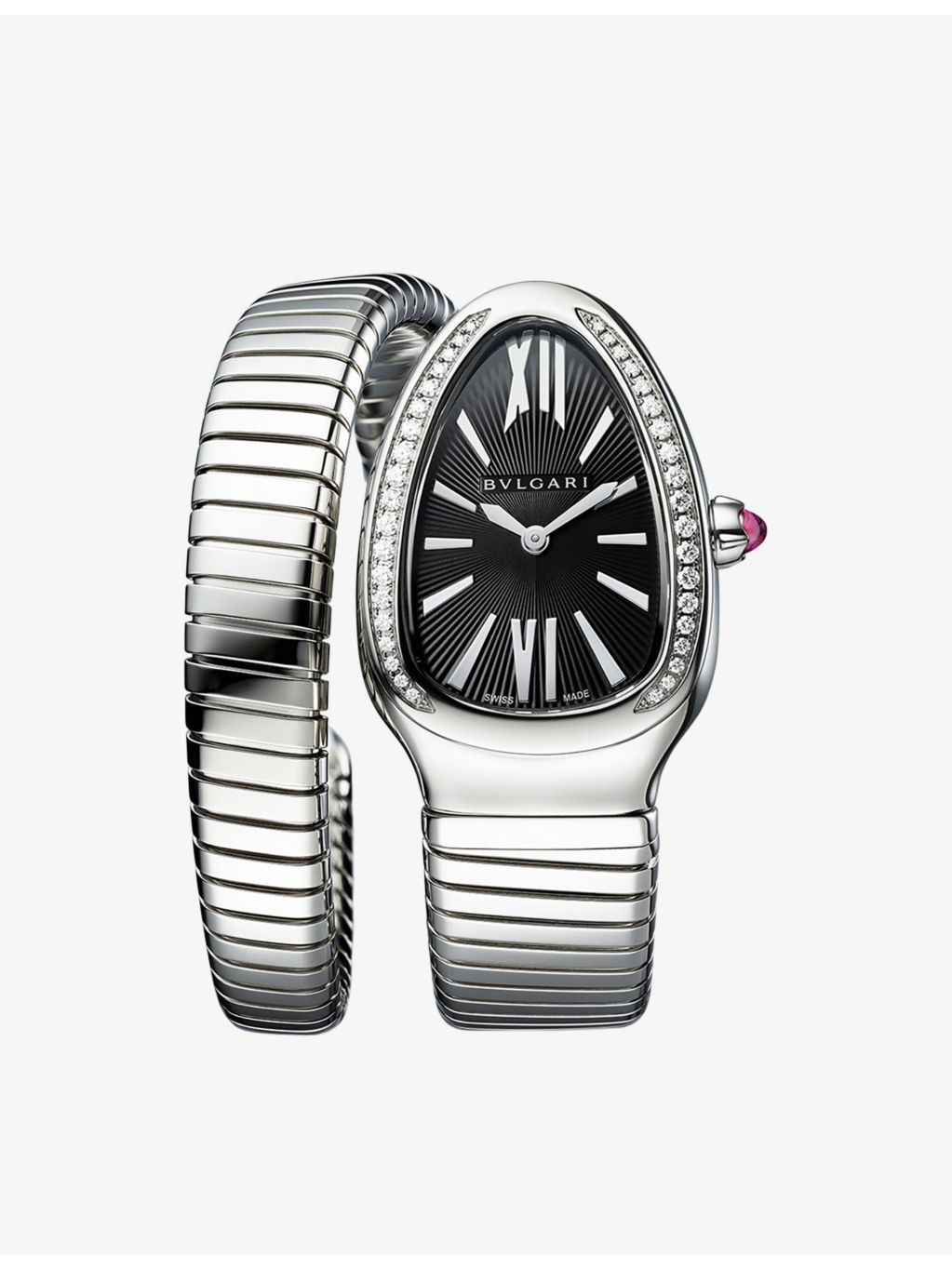 PRODUCT DETAILS - Bvlgari stainless-steel quartz watch - 100% stainless steel - Folding-buckle fastening - Curved case, snake design, silver-tone, polished - Case diameter: 35mm - Wipe with a clean, dry cloth - Water resistance: 3 bar / 3 atm / 30m / 100ft - Two-year manufacturer's warranty - Bulgari prides itself on providing excellent customer service. This includes contacting customers to offer after-sales care and share details about its brand and products. As such, when you order a Bulgari product from us, your details will be passed onto Bulgari so that it can provide these services to you. Ref: R03993269