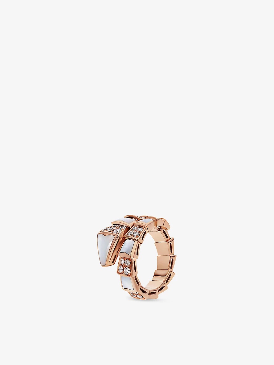 Serpenti Viper 18ct rose-gold, mother-of-pearl, 0.82ct round brilliant-cut diamond ring
