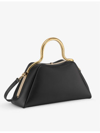 PRODUCT DETAILS - Bvlgari leather top-handle bag - Calf leather - Clasp fastening - Structured design, serpent-shaped handle, logo print at front, one main compartment, one interior slip pocket, gold-tone hardware - Height 14cm, width 27cm, depth 10cm - Specialist leather clean - Made in Italy Ref: R04198461