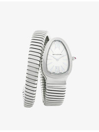 PRODUCT DETAILS - Bvlgari large stainless-steel quartz watch - 100% stainless steel; bracelet 100% stainless steel - Style number: SP35C6SS.1T/L - Slips on - Synthetic-sapphire glass, opaline drop dial with guilloche soleil treatment, B033 calibre, 5 jewels, single-spiral bracelet and hand-applied indexes, curved case, crown set with a cabochon-cut rubellite - Case diameter: 35mm - Wipe with a clean, dry cloth - Water resistance: 3 bar / 3 atm / 30m / 100ft - Made in Switzerland - Two-year manufacturer's warranty - Bvlgari prides itself on providing excellent customer service. This includes contacting customers to offer after-sales care and share details about its brand and products. As such, when you order a Bvlgari product from us, your details will be passed onto Bvlgari so that it can provide these services to you. Ref: R04208012