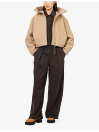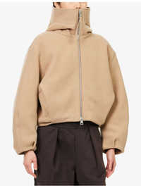 PRODUCT DETAILS - Canada Goose wool-blend bomber jacket - 75% wool, 25% polyamide; filling 80% wool, 20% polyamide; lining 100% polyamide - Exposed zip fastening at front - Relaxed fit, snorkel hood, dropped shoulders, long balloon sleeves, elasticated cuffs, two side press-stud slip pockets, branded ribbon zipper, branded loop at back, pleated back hem, bubble hem, fully lined - Dry clean only - True to size - Size small: length 21in / 53.5cm - Model is 5ft 10in/1.78m and wears a size small - Midweight, non-stretch Ref: R04540897