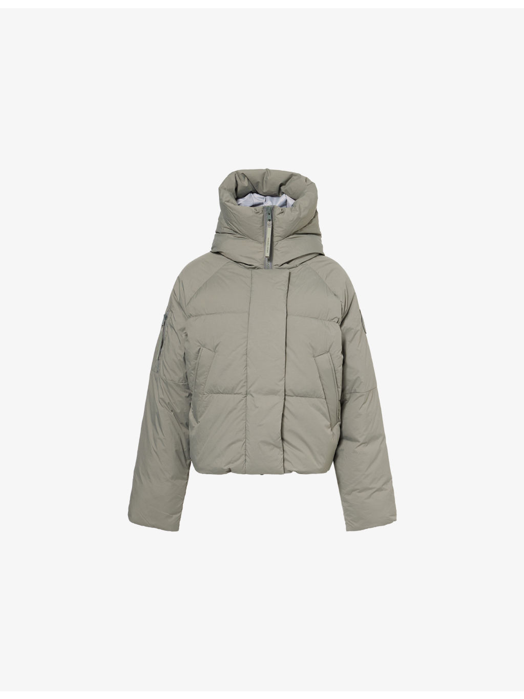 PRODUCT DETAILS - Canada Goose nylon-down jacket - 100% polyamide; filling 90% duck down, 10% duck feather - Zip fastening - Regular fit, funnel neck, hood, long sleeves, logo patch at sleeve, angled pockets at front, quilted and padded, branded hardware - Dry clean - True to size - Size small: length 21in / 53cm - Model is 5ft 10in/1.78m and wears a size small - Heavyweight, non-stretch Ref: R04540887