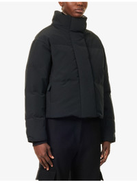PRODUCT DETAILS - Canada Goose shell-down puffer jacket - 84% polyester, 16% cotton; filling 80% duck down, 20% duck feather; lining 100% polyamide - Concealed press-stud and zip fastening at front - Regular fit, funnel neck, long sleeves, rib-knit cuffs, brand patch at sleeve, contrast piping, two zip pockets at sides, two mesh drop-in pockets at interior, one zipped security pocket at interior, drawcord hem, fixed backpack straps, all-over quilting - Dry clean only - True to size - Size small: length 24in / 61cm - Model is 5ft 10in/1.78m and wears a size small - Midweight, non-stretch Ref: R04391332