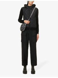 PRODUCT DETAILS - Canada Goose wool hoody - 100% wool; contrast 100% polyamide; filling 90% duck down, 10% duck feather; lining 100% polyamide - Exposed zip fastening at front - Regular fit, drawcord hood, long sleeves, branded patch at sleeve, contrast panels, two zipped slip pockets at front, ribbed trims - Specialist dry clean - True to size - Size small: length 23in / 59cm - Model is 5ft 10in/1.78m and wears a size small - Midweight, non-stretch