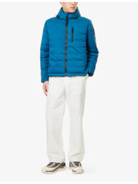 PRODUCT DETAILS - Canada Goose shell-down hoody - 100% polyamide; filling 90% duck down, 10% duck feather; lining 100% polyester - Regular fit, high neck, drawstring hood, long sleeves, brand patch at sleeve, elasticated cuffs, three zip pockets at front, all-over padded, fully lined, curved hem - Machine wash at 30°C - Size medium: length 27in / 69cm, chest 44in / 112cm - Model is 6ft 2in/1.88m and wears a size medium - Midweight, slight stretch Ref: R04535001