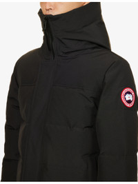 PRODUCT DETAILS - Canada Goose twill-down jacket - 85% polyester, 15% cotton; lining 100% nylon; filling 80% duck down, 20% duck feather - Concealed popper and zip fastenings at front - Funnel neck, drawstring hood, long sleeves, brand badge at sleeve, ribbed elasticated cuffs, two -zip fastening welt pockets at front, branded hardware, all-over padded and quilted, fully lined, interior pockets - Dry clean only - Size medium: Length 26in / 66cm, chest 40in / 101.5cm - Model is 6ft 2in/1.88m and wears a size medium - Midweight, non-stretch Ref: R03652606-S