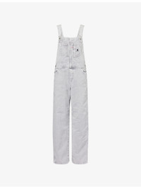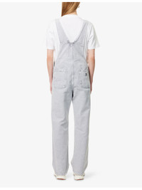 PRODUCT DETAILS - Carhartt WIP denim dungarees - 100% cotton; pocketlining 100% cotton - Clasp fastening at front and exposed button fastening at sides - Relaxed fit, square neck, shoulder straps, straight leg, two slip pockets at front, two patch pockets and brand patch at front and back - Machine wash at 40°C - Made in Tunisia - True to size - Size small: length 31in / 79cm, inside leg 29in / 75cm, leg opening 18in / 46cm - Model is 5ft 10in/1.78m and wears a size small - Midweight, non-stretch Ref: R04469179