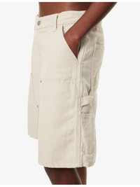 PRODUCT DETAILS - Carhartt WIP cotton-and-linen shorts - 61% cotton, 39% linen - Button and zip-fly fastenings at front - Relaxed fit, mid-rise, straight leg, belt loops, side pockets, patch pockets and logo patch at back - Machine wash at 40°C - Made in Tunisia - True to size - Size small: rise 13in / 33cm, inside leg 9.5in / 24cm, leg opening 25in / 64cm - Model is 5ft 10in/1.78m and wears a size small - Midweight, non-stretch Ref: R04469174