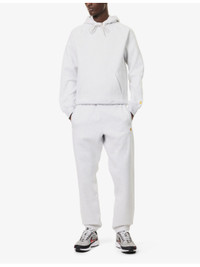 PRODUCT DETAILS - Carhartt WIP cotton-blend jogging bottoms - 58% cotton, 42% polyester - Pulls on - Relaxed fit, mid-rise, tapered leg, drawstring waistband, two slip pockets at front, embroidered branding at front, patch pocket at back, elasticated cuffs - Machine wash at 30°C - Model is 6ft 2in/1.88m and wears a size medium - Midweight, slight stretch Ref: R04421668