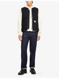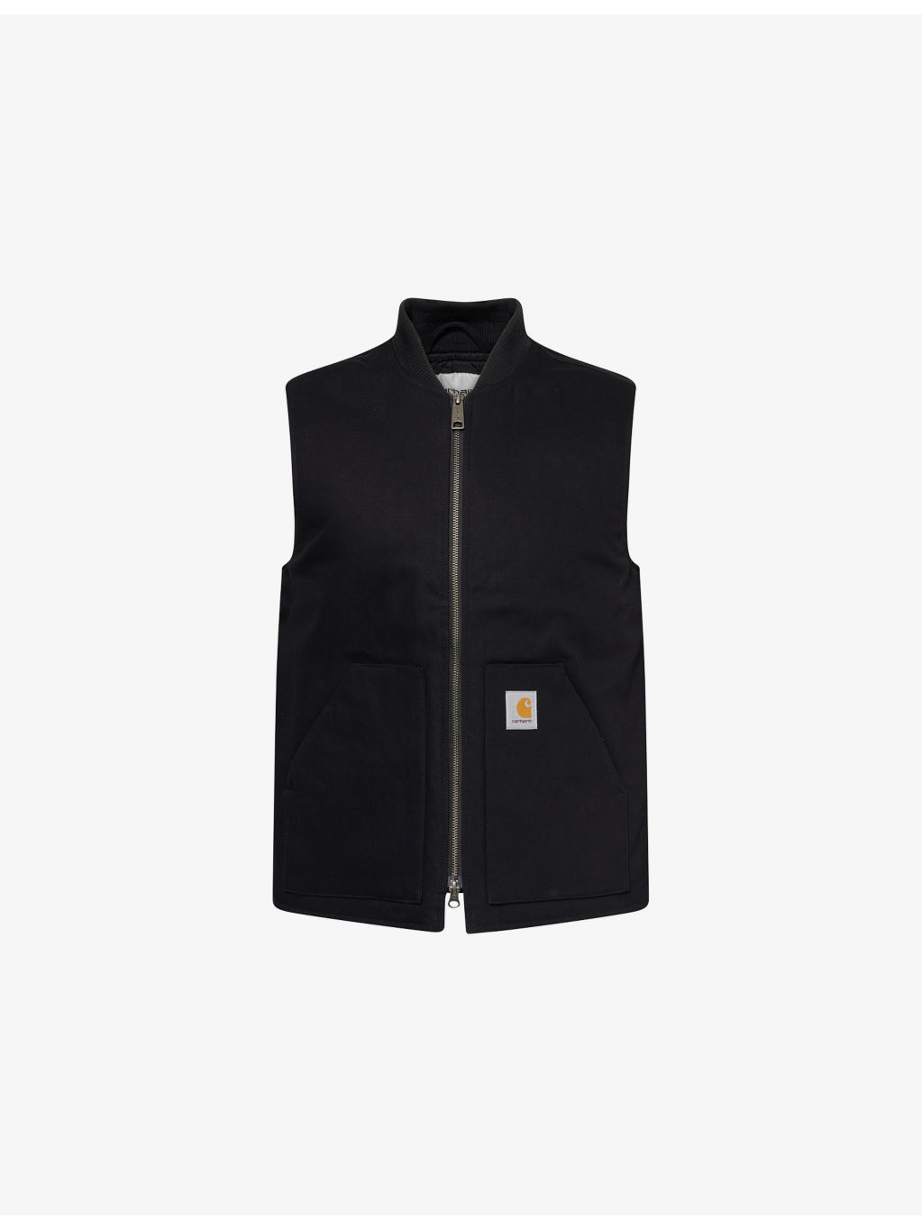 PRODUCT DETAILS - Carhartt WIP cotton vest - 100% cotton; lining 100% nylon; trims 85% polyester, 15% elastane - Exposed zip fastening at front - Regular fit, ribbed band collar, sleeveless, two front slip pockets, logo patch embroidered at front, branded silver-toned hardware, quilted lining - Machine wash at 30°C - Size medium: length 26in / 66cm, chest 40in / 101.5cm - Model is 6ft 2in/1.88m and wears a size medium - Midweight, non-stretch Ref: R04481687
