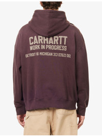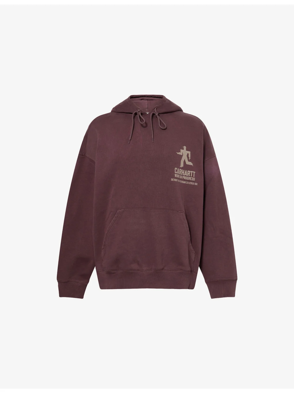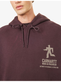 PRODUCT DETAILS - Carhartt WIP cotton-jersey hoodie - 100% cotton; trims 96% cotton, 4% elastane - Relaxed fit, drawstring hood, dropped shoulders, long sleeves, kangaroo pocket and brand print at front, brand and text print at back, brushed interior, ribbed trims - Machine wash at 30°C - Model is 6ft 2in/1.88m and wears a size medium - Midweight, stretchy Ref: R04481708