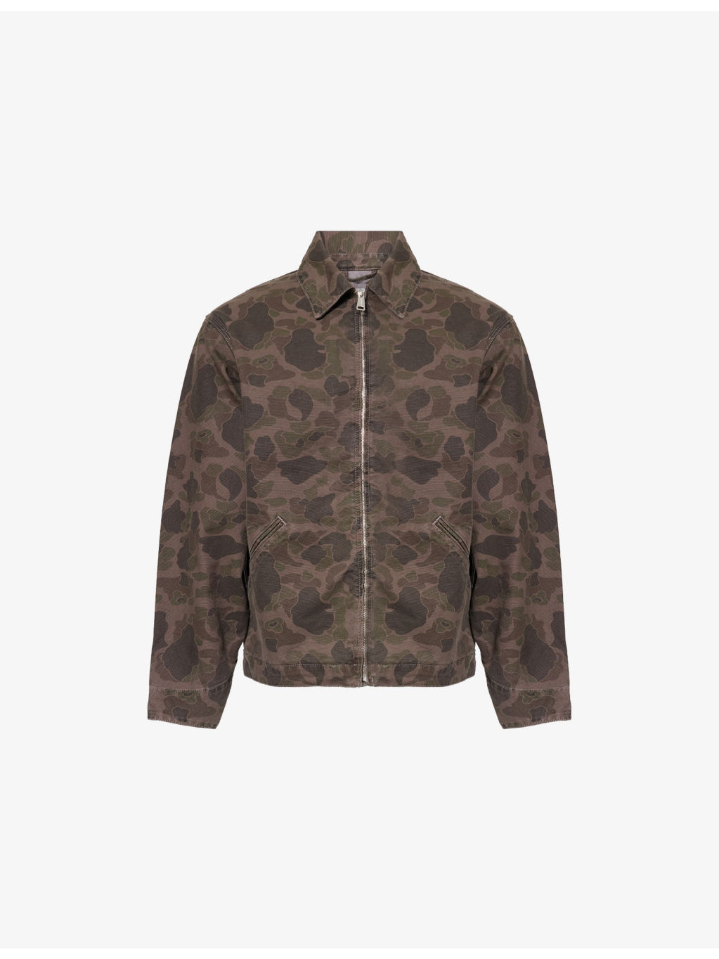 PRODUCT DETAILS - Carhartt WIP denim jacket - 100% cotton - Concealed zip fastening at front - Classic collars, long sleeves, press-stud cuff, logo patch at chest, three zipped pockets at front, all-over camo print, adjustable hem - Machine wash cold - Made in Tunisia - Size medium: length 28.7in / 73cm, chest 49.6in / 126cm - Model is 6ft 2in/1.88m and wears a size medium - Midweight, non-stretch Ref: R04481694