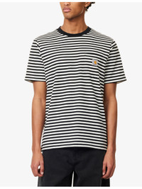 PRODUCT DETAILS - Carhartt WIP cotton t-shirt - 100% cotton - Relaxed fit, crew neck, short sleeves, brand patch and pocket at chest, all-over stripe - Machine wash at 30°C - Model is 6ft 2in/1.88m and wears a size medium - Lightweight, stretchy Ref: R04560699