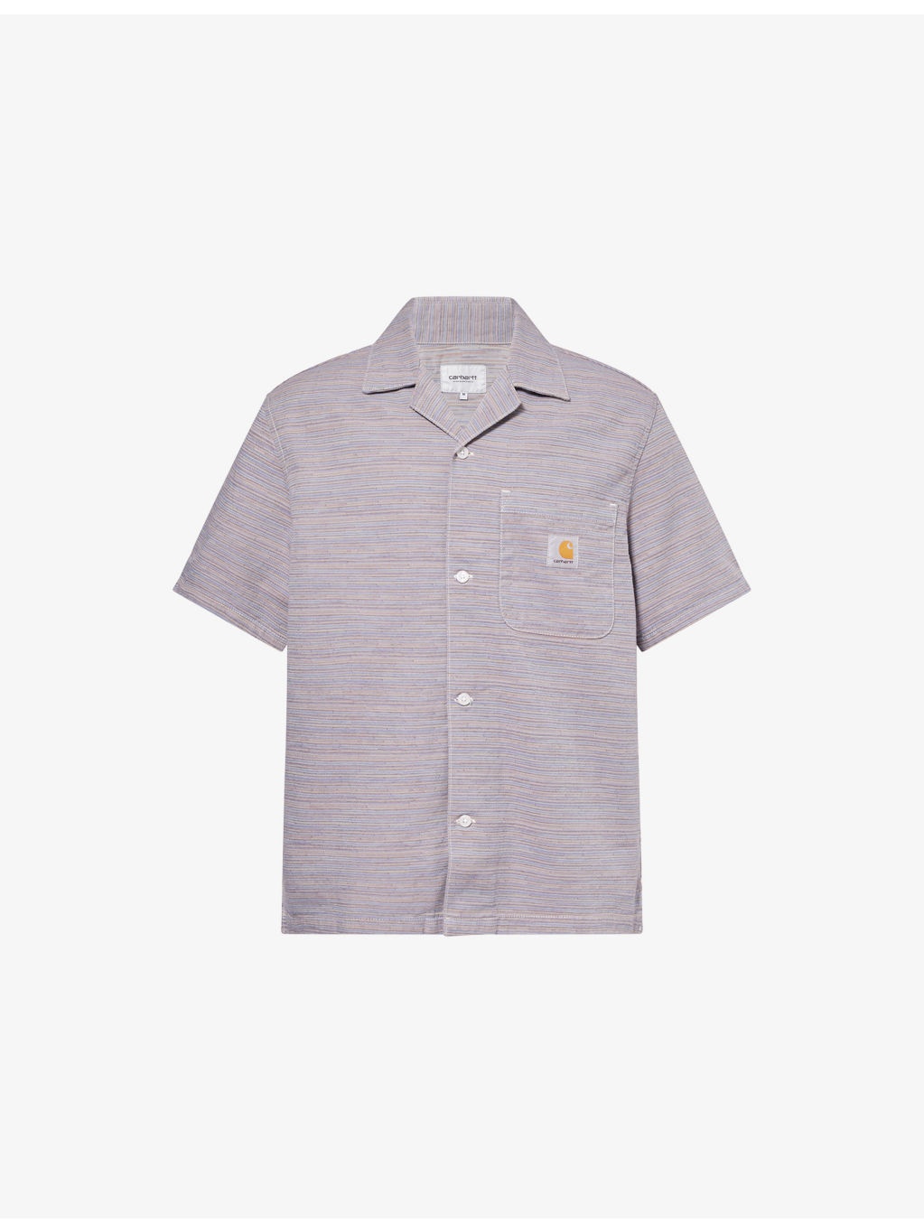 PRODUCT DETAILS - Carhartt WIP cotton shirt - 100% cotton - Button fastening - Regular fit, spread collar, short sleeves, patch pocket with brand embroidery at front, striped - Machine wash mild - Model is 6ft 2in/1.88m and wears a size medium - Midweight, non-stretch Ref: R04467077