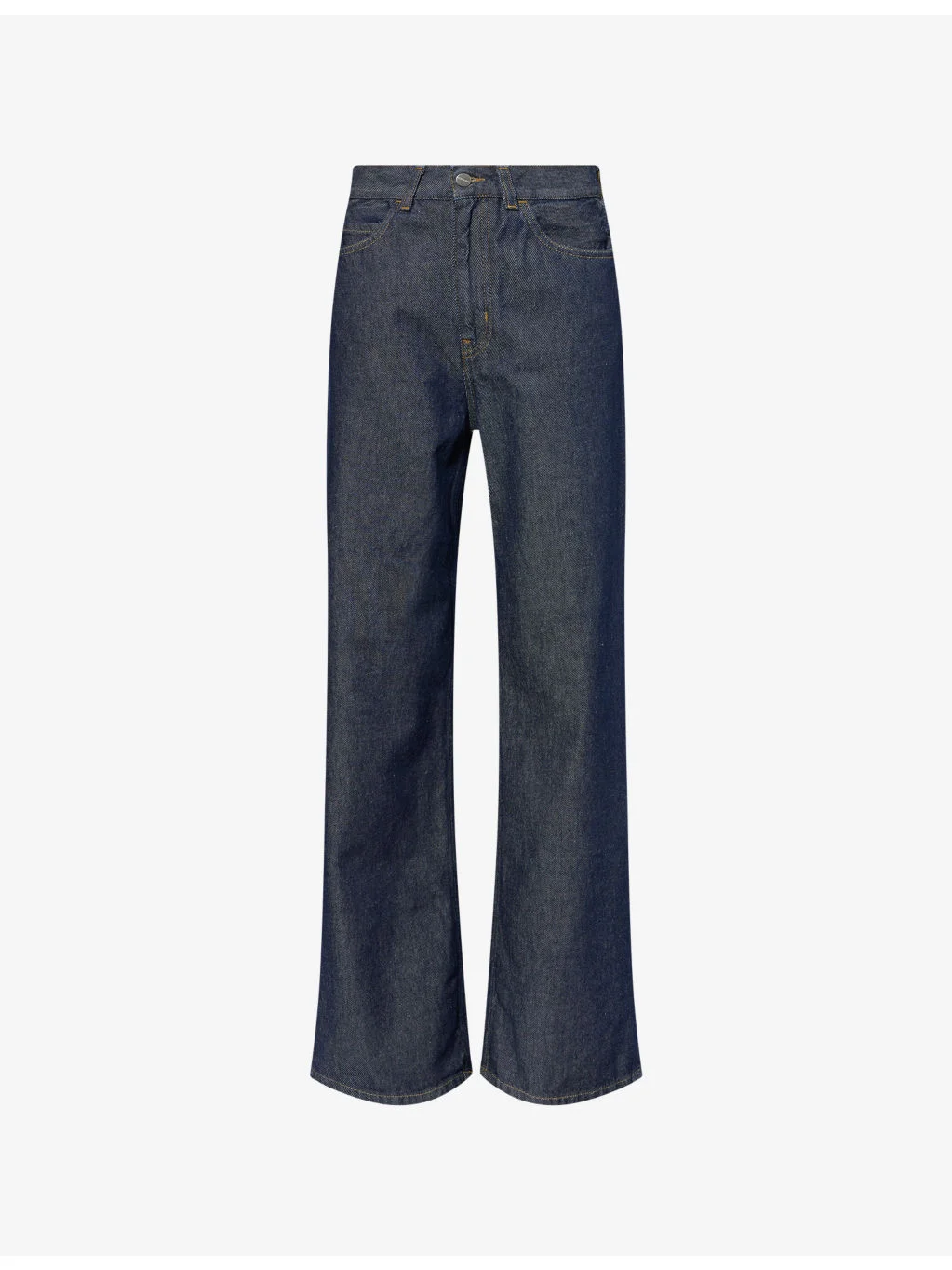 PRODUCT DETAILS - Carhartt WIP denim jeans - 100% cotton - Button and zip-fly fastening - Loose fit, high waisted, slightly flared hem, wide leg, belt loops, brand logo at back - Machine wash mild - True to size - Model is 5ft 10in/1.78m and wears a size 26 - Midweight, non-stretch Ref: R04566704