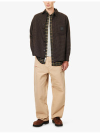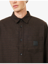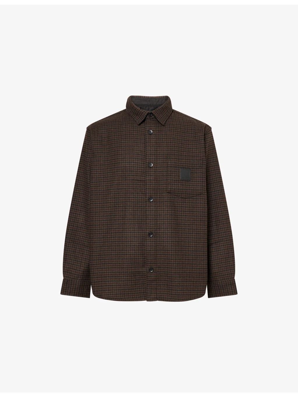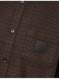 PRODUCT DETAILS - Carhartt WIP woven shirt - 80% polyester, 20% wool; contrast 100% cotton - Exposed button fastening at front - Spread collar - Buttoned cuffs - Relaxed fit, spread collar, long sleeves, buttoned cuffs, brand patch and patch pocket at front, straight yoke and pleat at back, all-over houndstooth print, flannel texture, curved hem - Hand wash cold - Size medium: length 28in / 73cm, chest 48in / 122cm - Model is 6ft 2in/1.88m and wears a size medium - Midweight, stretchy Ref: R04525440