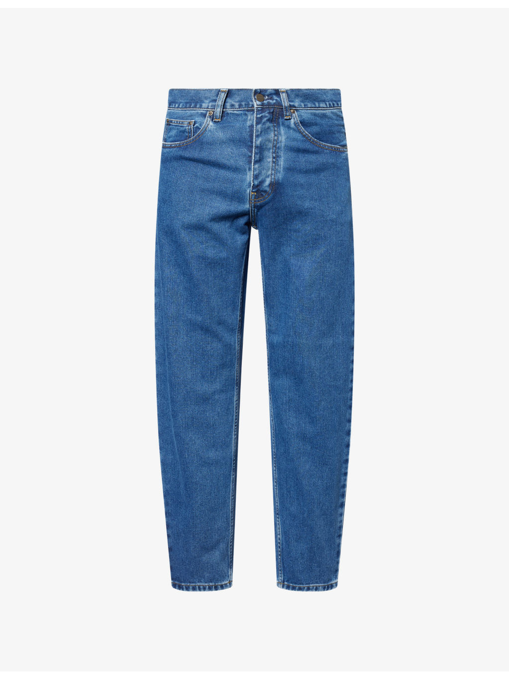 PRODUCT DETAILS - Carhartt WIP organic-denim jeans - 100% organic cotton - Exposed button and concealed button-fly fastenings at front - Relaxed fit, tapered leg, mid-rise, belt loops, five pockets, brand patch at back - Machine wash cold - Made in Tunisia - Size UK 30: rise 11in / 28cm, inside leg 28.5in / 72.5cm, leg opening 14in / 36cm - Model is 6ft 2in/1.88m and wears a size UK 30 - Midweight, non-stretch Ref: R04338348