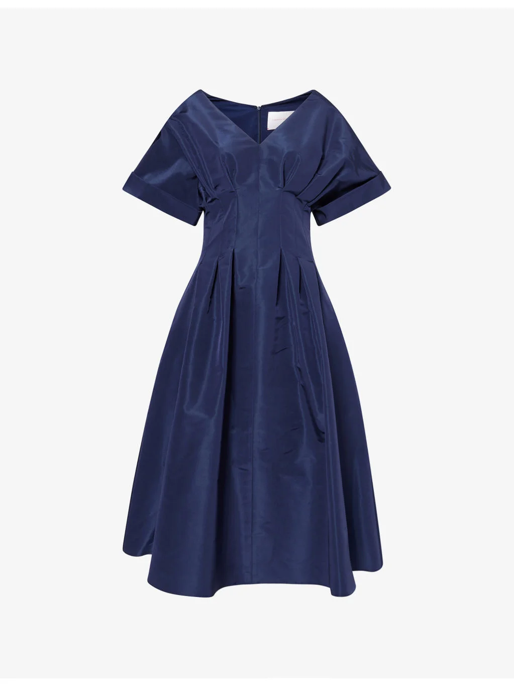 PRODUCT DETAILS - Carolina Herrera silk midi dress - 100% silk - Concealed zip fastening at back - Regular fit, V-neck, short wide rolled sleeves, gathered seamed waist, two side slip pockets, full flared skirt, midi length - Dry clean only - Made in USA - True to size - Size UK 10: length 49in / 124.5cm - Model is 5ft 10in / 1.78m and wears a size UK 10 - Midweight, non-stretch Ref: R04559844