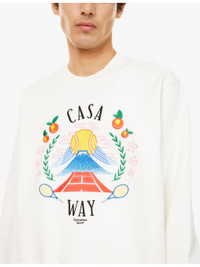 PRODUCT DETAILS - Casablanca cotton-jersey sweatshirt - 100% cotton; contrast 95% cotton, 5% elastane - Relaxed fit, crewneck, dropped shoulders, long sleeves, seasonal artwork embroidered at front, logo embroidered at front, ribbed trims, loopback jersey fabric - Machine wash at 30°C - Made in Portugal - Model is 6ft 2in/1.88m and wears a size medium - Midweight, non-stretch Ref: R04482269