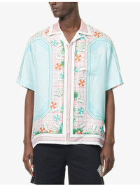 PRODUCT DETAILS - Casablanca silk shirt - 100% silk - Concealed button fastenings at front - Cuban collar - Regular fit, collar, short sleeves, patch pocket at chest, printed design - Dry clean only - Made in Italy - Size medium: length 28in / 71cm, chest 46in / 117cm - Model is 6ft 2in/1.88m and wears a size medium - Lightweight, non-stretch Ref: R04458691