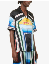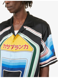 PRODUCT DETAILS - Casablanca silk shirt - 100% silk - Concealed button fastenings at front - Relaxed fit, cuban collar, short sleeves, all-over graphic pattern - Dry clean - Made in Italy - Size medium: length 30in / 76cm, chest 48in / 122cm - Model is 6ft 2in/1.88m and wears a size medium - Lightweight, non-stretch Ref: R04482278