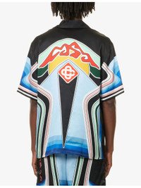 Cuban-Collar Graphic-Pattern Silk Shirt