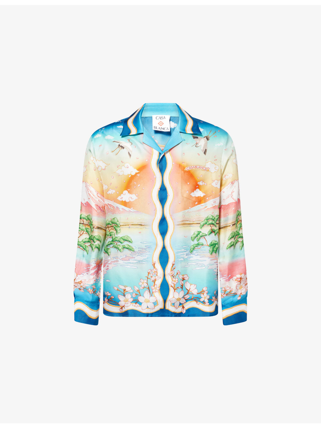 PRODUCT DETAILS - Casablanca silk shirt - 100% silk - Button fastening at front - Relaxed fit, cuban collar, long sleeves, buttoned cuffs, patch pocket and logo pattern at pocket, all-over graphic pattern - Dry clean - Made in Italy - Size medium: length 28in / 71cm, chest 47in / 120cm - Model is 6ft 2in/1.88m and wears a size medium - Lightweight, non-stretch Ref: R04482280