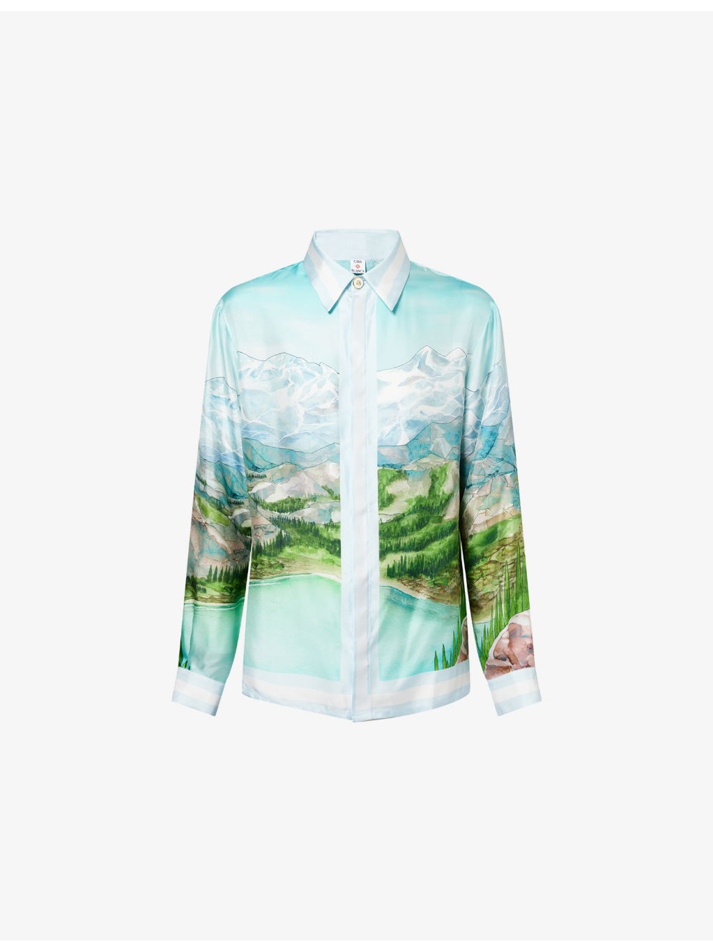 PRODUCT DETAILS - Casablanca silk shirt - 100% silk - Concealed button fastenings at front - Straight-point collar - Regular fit, collar, long sleeves, buttoned cuffs, printed design - Dry clean only - Made in Italy - Size medium: length 28in / 71cm, chest 46in / 117cm - Model is 6ft 2in/1.88m and wears a size medium - Lightweight, non-stretch Ref: R04458689