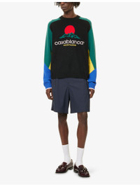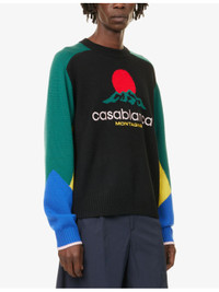PRODUCT DETAILS - Casablanca wool-knit jumper - 100% wool - Relaxed fit, crewneck, contrasting long sleeves, embroidered logo at front, ribbed trims - Hand wash - Model is 6ft 2in/1.88m and wears a size medium - Midweight, slight stretch Ref: R04482309