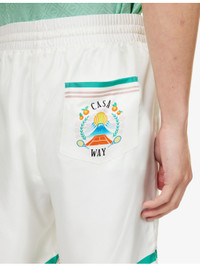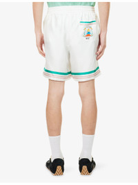 PRODUCT DETAILS - Casablanca silk shorts - 100% silk - Pulls on - Relaxed fit, drawstring elasticated waist, side pockets, all-over print, lined - Dry clean - Model is 6ft 2in/1.88m and wears a size medium - Lightweight, non-stretch Ref: R04482285