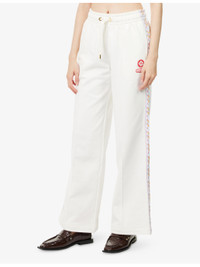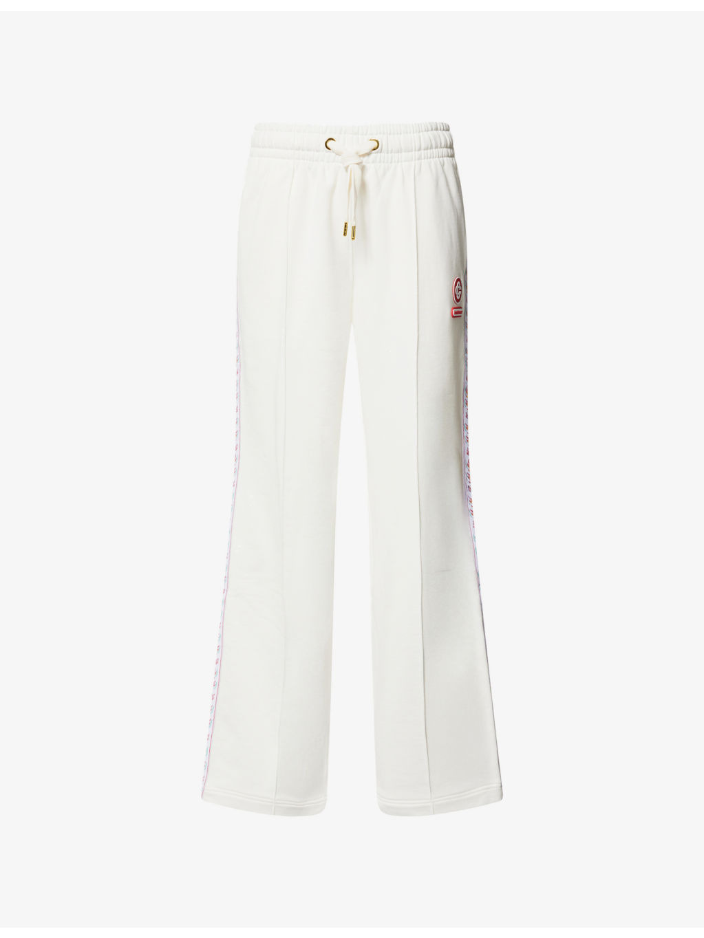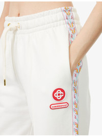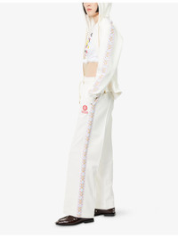 PRODUCT DETAILS - Casablanca cotton-jersey jogging bottoms - 100% cotton; contrast 100% polyester; embellishments 100% polyvinyl chloride; lining 100% cotton - Relaxed fit, high-rise, straight leg, drawstring elasticated waistband, two slip pockets and rubberised brand patches at front, stitched creases at front and back, patch pocket at back, flame print panel at sides - Machine wash at 30°C - Made in Portugal - True to size - Model is 5ft 10in/1.78m and wears a size small - Midweight, slight stretch Ref: R04515079
