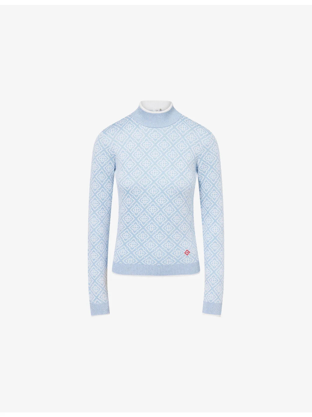 PRODUCT DETAILS - Casablanca wool-blend jumper - 53% merino wool, 39% viscose, 8% polyester - Regular fit, high-neck, long sleeves, brand patch at front, all-over monogram print, knitted, all-over metallic weave, ribbed trims - Hand wash cold - True to size - Model is 5ft 10in/1.78m and wears a size small - Midweight, stretchy Ref: R04518463