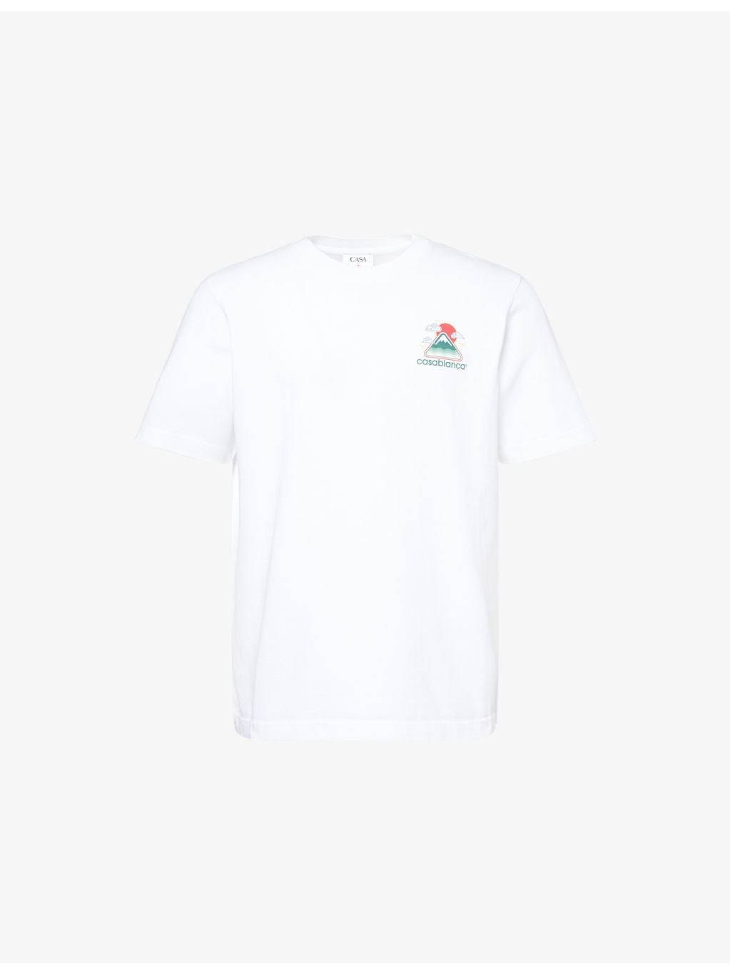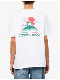 PRODUCT DETAILS - Casablanca cotton-jersey T-shirt - 100% cotton; contrast 100% cotton - Relaxed fit, crewneck, ribbed trim at neck, dropped shoulders, short sleeves, seasonal artwork graphic print at chest and back, logo print at chest and back, jersey texture - Machine wash at 30°C - Made in Portugal - Model is 6ft 2in/1.88m and wears a size medium - Lightweight, non-stretch Ref: R04482289