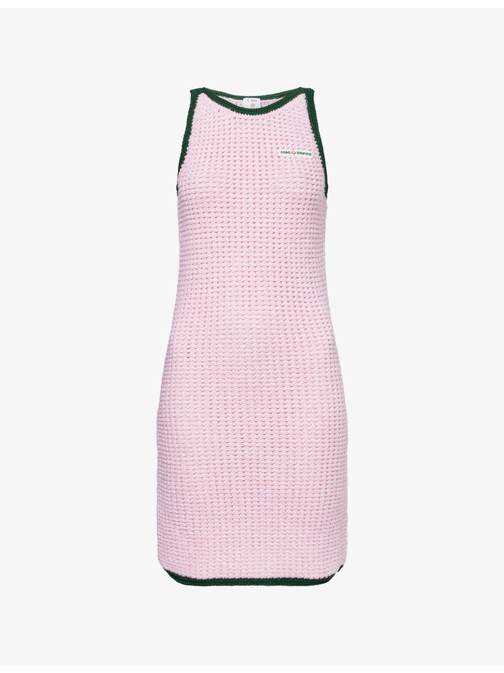 PRODUCT DETAILS - Casablanca stretch-cotton mini dress - 95% cotton, 5% elastane; contrast 100% polyester; embellishments 100% polyvinyl chloride - Slim fit, round-neck, sleeveless, rubberised brand patch at front, brand patch at back, all-over knitted, contrast trims - Hand wash cold - True to size - Size small: length 34in / 87cm - Model is 5ft 10in/1.78m and wears a size small - Midweight, stretchy Ref: R04463650