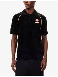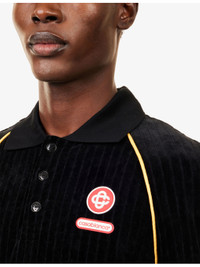 PRODUCT DETAILS - Casablanca velour polo shirt - 50% lyocell, 25% cotton, 23% polyester, 2% elastane - Button fastening at front - Regular fit, short sleeves, logo patch at chest and nape, contrast piping at front, textured - Machine wash at 30°C - Made in Portugal - Model is 6ft 2in/1.88m and wears a size medium - Lightweight, slight stretch Ref: R04522893