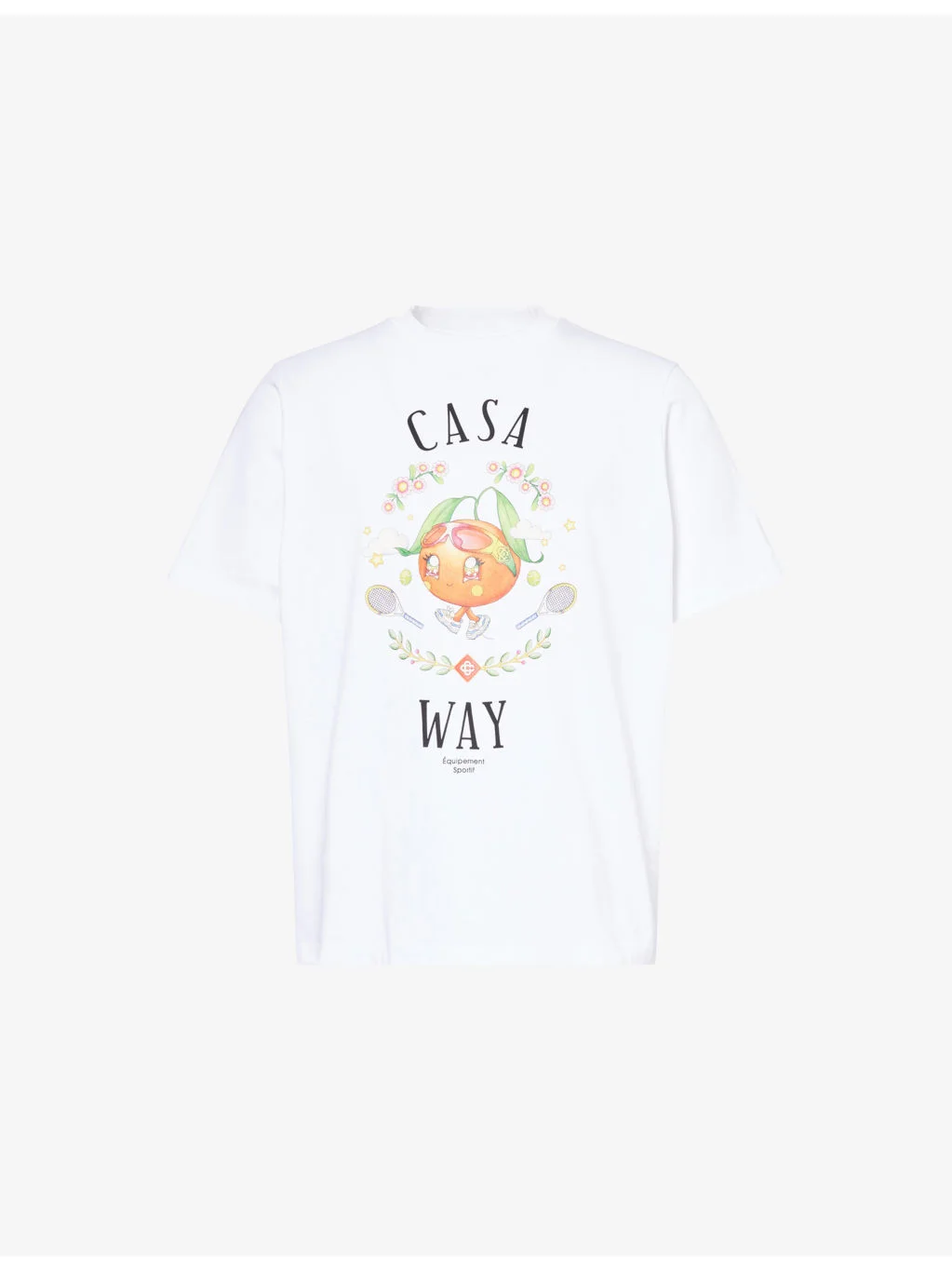 PRODUCT DETAILS - Casablanca cotton T-shirt - 100% cotton - Regular fit, crewneck, short sleeves, graphic print at front - Machine wash at 30°C - Made in Portugal - Model is 6ft 2in/1.88m and wears a size medium - Lightweight, slight stretch Ref: R04522901