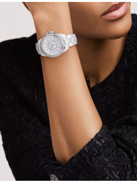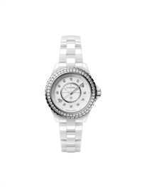 PRODUCT DETAILS - CHANEL steel, ceramic and 1.21ct diamond quartz watch - Style number: H6418 - Steel triple-folding buckle - Highly resistant ceramic and steel case, high precision quartz movement, steel fixed bezel set with 46 brilliant-cut diamonds, steel screw-down crown with highly resistant ceramic cabochon, lacquered dial, diamond indicators, three hands - Case diameter: 33mm - Water resistance: 5 bar / 5 atm / 50m / 165ft - Made in Switzerland - Five-year warranty - To learn more about this product or for expert styling services, get in touch with our Personal Shopping team Ref: R04202727