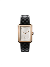 PRODUCT DETAILS - CHANEL medium 18ct beige-gold and quilted-leather quartz watch - 100% 18ct beige gold; strap 100% calf leather - Style number: H6588 - 18ct beige-gold ardillon buckle - Opaline guilloche dial, 18ct beige-gold crown with onyx cabochon, strap with interchangeable system, second strap included, high precision quartz movement - Case diameter: 34.6mm - Water resistance: 3 bar / 3 atm / 30m / 100ft - Made in Switzerland - Wipe with a clean, dry cloth - Five-year manufacturer's warranty - To learn more about this product or for expert styling services, get in touch with our Personal Shopping team Ref: R04202725