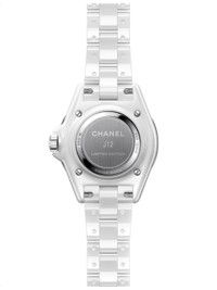 PRODUCT DETAILS - CHANEL stainless-steel, ceramic and diamond quartz watch - Style number: H7990 - Steel triple-folding buckle - Highly resistant ceramic and steel case, high precision quartz movement, steel fixed bezel set with 46 brilliant-cut diamonds, steel screw-down crown with highly resistant ceramic cabochon - Case diameter: 33mm - Made in Switzerland - Five-year warranty