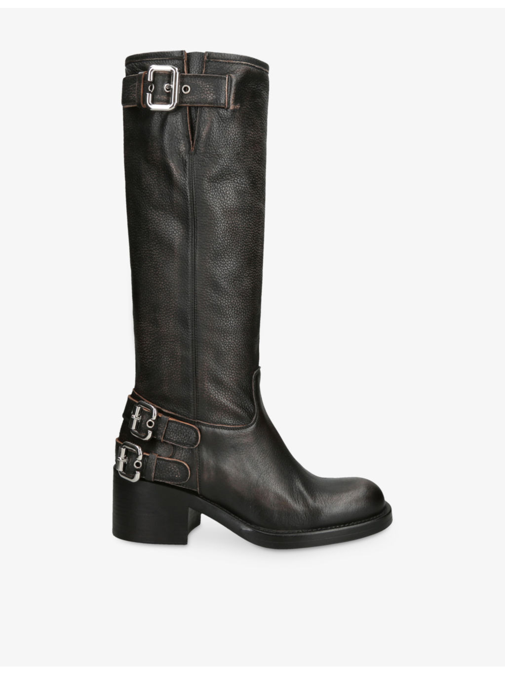 PRODUCT DETAILS - Chloe leather boots - 100% leather - Rounded toe, knee-high, stacked heel, vintage finish - Heel height 6cm - Specialist leather clean - Made in Italy - Upper: 100% leather - Lining: 100% leather - Sole: 100% rubber Ref: R04485387