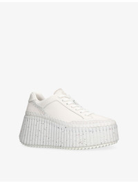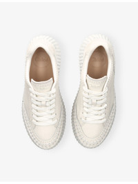 PRODUCT DETAILS - Chloe leather trainers - 100% cowhide leather - Lace-up fastening - Wedge heel, panelled upper, hand-stitched embroidery, logo detailing - Heel height 8cm - Specialist leather clean - Upper: 100% cowhide; 100% suede cowhide - Inner sole: 100% ethylene vinyl acetate - Main lining: 95% polyester, 5% elastane - Sole: 50% ethylene vinyl acetate, 50% rubber - Heel: 50% acrylonitrile butadiene styrene, 50% sheepskin Ref: R04520400