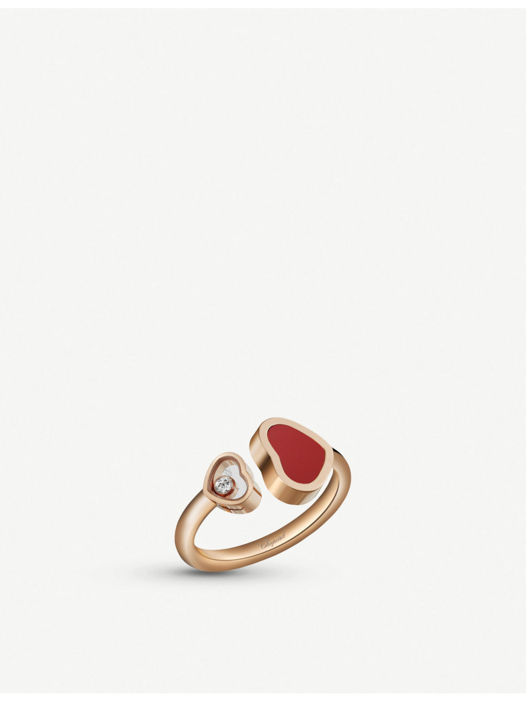 Happy 18-karat rose gold, carnelian and diamond ring Red