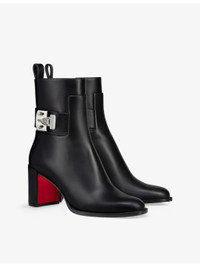 PRODUCT DETAILS - 100% calf leather - Heel height 3.9in - Made in Italy - True to size - Product care – The red lacquer of the soles wears out with use. This is not a manufacturing defect; it is simply normal wear and tear. Christian Louboutin strongly recommends that its customers consult a professional in leather care or a shoemaker for specific care advice. In order to keep your shoes in good condition, the following leather care is recommended: - Keep the leather area clean and dry using a dry, soft cloth - Always store your products away from light and heat - Protect your leather goods from rain and moisture - Store your products in the Christian Louboutin dust bag provided - Avoid contact with abrasive surfaces - Regrettably we are unable to accept in-store returns on Christian Louboutin orders - PLEASE NOTE: Due to the delicate nature of the red soles we ask that the shoes be tried on carpeted flooring. If not, they may not be suitable for return Ref: R04399745