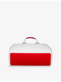 PRODUCT DETAILS - Christian Louboutin leather tote bag - 75% calf leather, 25% rubber fibre - Open top - Two top handles, metal stud-embellished straps surrounding the handles, security hook, signature red lining, one main interior compartment, detachable zipped pouch with wrist strap, logo-embossed red rubber base - Height 24cm, width 34cm, depth 14cm - Wipe with a clean, dry cloth - Made in Italy Ref: R04469392