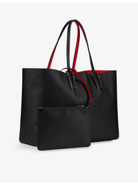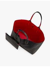 PRODUCT DETAILS - Christian Louboutin leather tote bag - 100% calf leather - Open top - Structured shape, two top handles, one main compartment, removable pouch, security hook, gunmetal-toned spike hardware, Loubi red lining and base - Height 29cm, length 39cm, width 16cm, handle drop 21cm - Specialist leather clean - Regrettably we are unable to accept in-store returns on Christian Louboutin orders Ref: R04484664