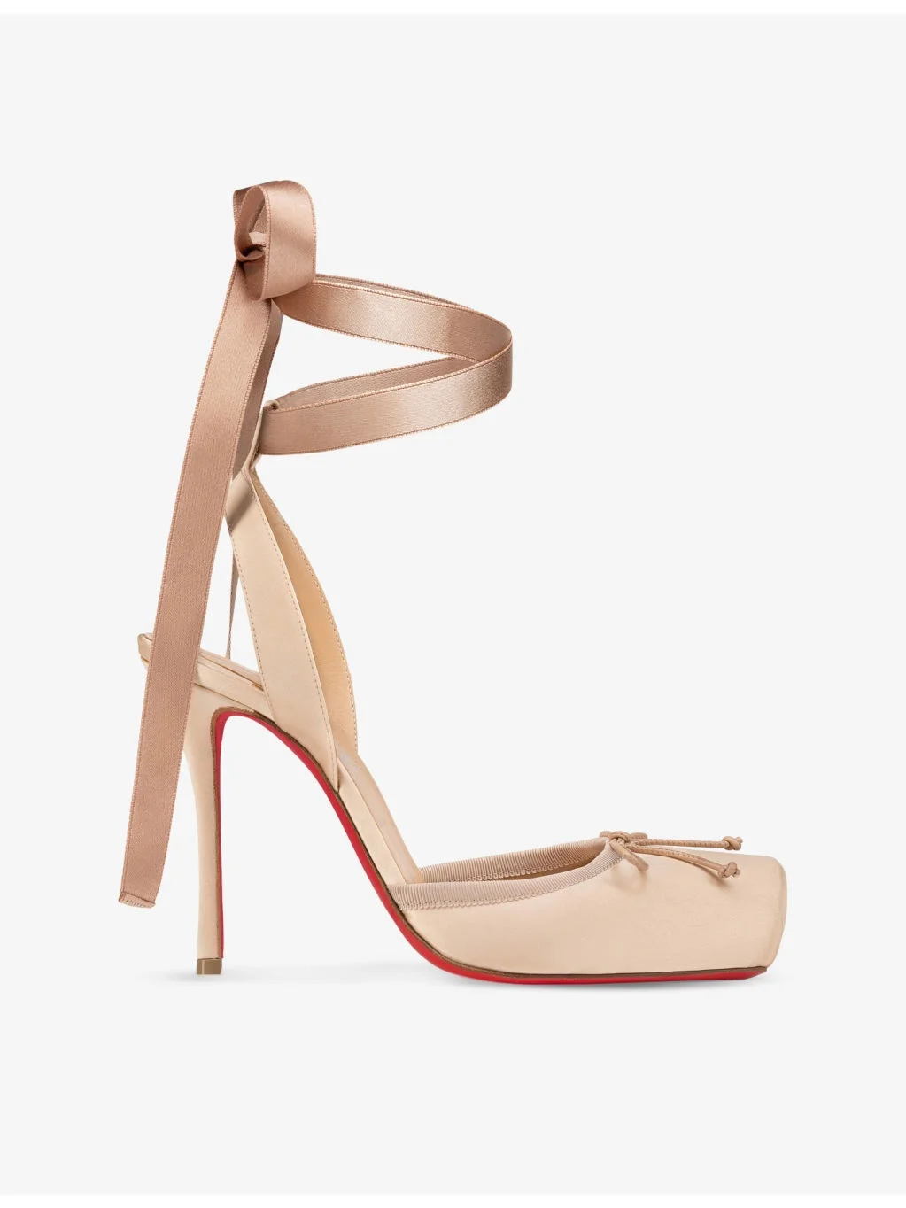 PRODUCT DETAILS - 100% crepe satin - Heel height 100mm / 3.9"" - Made in Italy - True to size - Product care – The red lacquer of the soles wears out with use. This is not a manufacturing defect; it is simply normal wear and tear. Christian Louboutin strongly recommends that its customers consult a professional in leather care or a shoemaker for specific care advice. In order to keep your shoes in good condition, the following leather care is recommended: - Keep the leather area clean and dry using a dry, soft cloth - Always store your products away from light and heat - Protect your leather goods from rain and moisture - Store your products in the Christian Louboutin dust bag provided - Avoid contact with abrasive services - Regrettably we are unable to accept in-store returns on Christian Louboutin orders Ref: R04399743